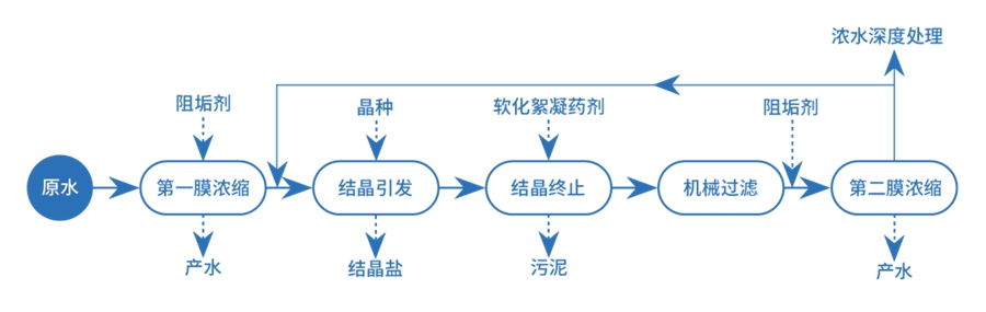 當前,傳統工藝處理此類廢水,存在很多不足:工藝鏈冗長、藥劑消耗量大、產生的固廢污泥難處置、膜易結垢不利于系統穩定運行、雜鹽產出量大,最終使水處理成本高昂,也無法滿足環保要求。