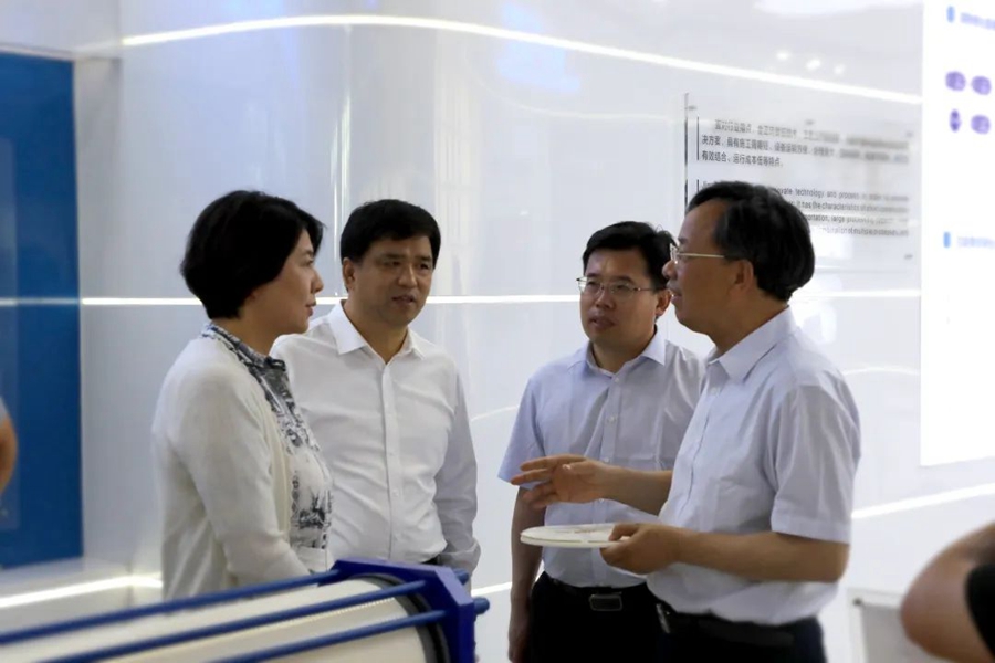 當(dāng)日下午,萬(wàn)華集團(tuán)董事長(zhǎng)廖增太、萊山區(qū)委書(shū)記羅建一行來(lái)到我司走訪交流。煙臺(tái)金正環(huán)保董事長(zhǎng)張卓陪同參觀。雙方圍繞如何深化合作實(shí)現(xiàn)共贏進(jìn)行了交流。