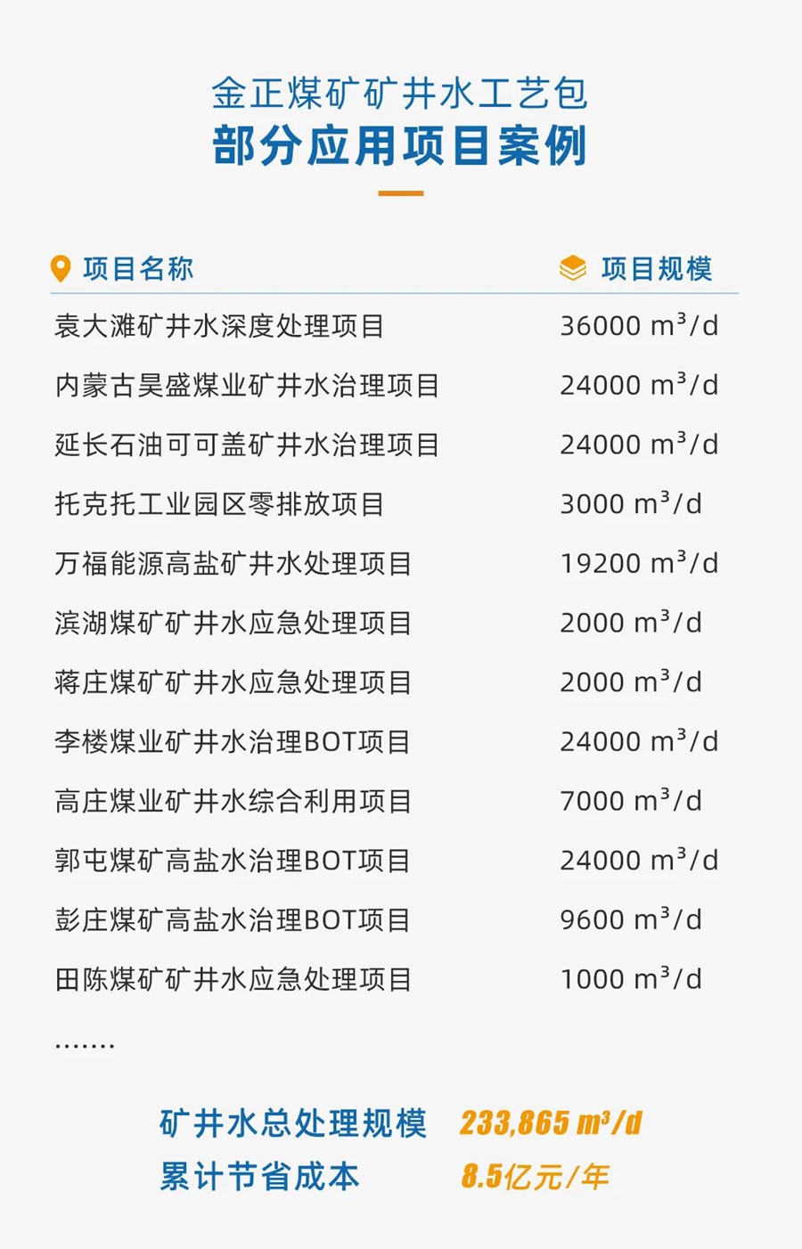 不出意料,是煙臺金正環(huán)保的煤礦礦井水低成本零排放整體解決方案。高礦化度的化工園區(qū)高鹽水、煤礦礦井水、脫硫廢水等污廢水,含鹽量高,直接排放會破壞生態(tài)、污染環(huán)境。從產(chǎn)業(yè)發(fā)展、水資源循環(huán)利用及生態(tài)環(huán)境保護等角度考慮,高濃鹽水零排放是必然選擇。而如何突破零排放的技術(shù)瓶頸,降低零排放經(jīng)濟成本,是目前許多業(yè)內(nèi)企業(yè)面臨的共同難題。當(dāng)前,傳統(tǒng)工藝處理此類廢水,存在很多不足:工藝鏈冗長、藥劑消耗量大、產(chǎn)生的固廢污泥難處置、膜易結(jié)垢不利于系統(tǒng)穩(wěn)定運行、雜鹽產(chǎn)出量大,最終使水處理成本高昂,也無法滿足環(huán)保要求。